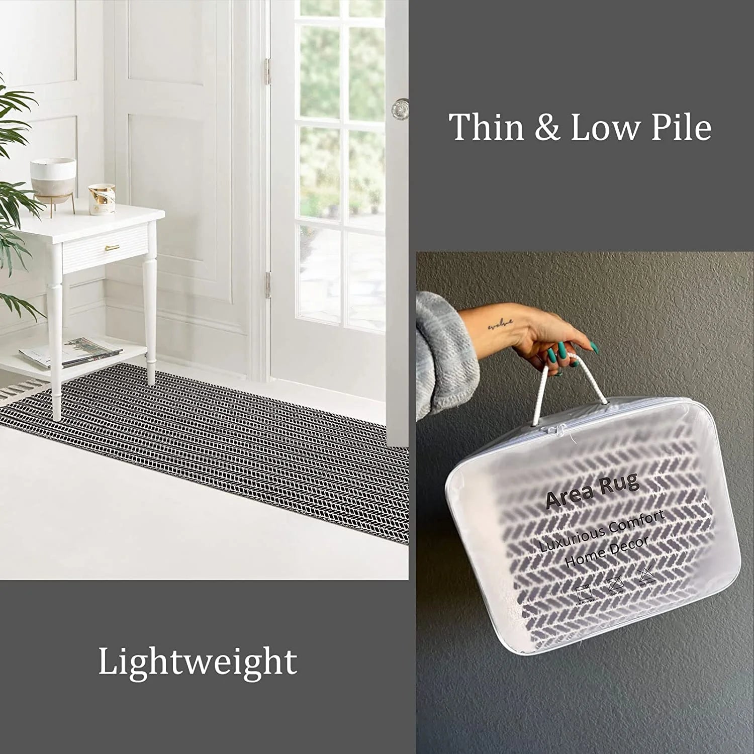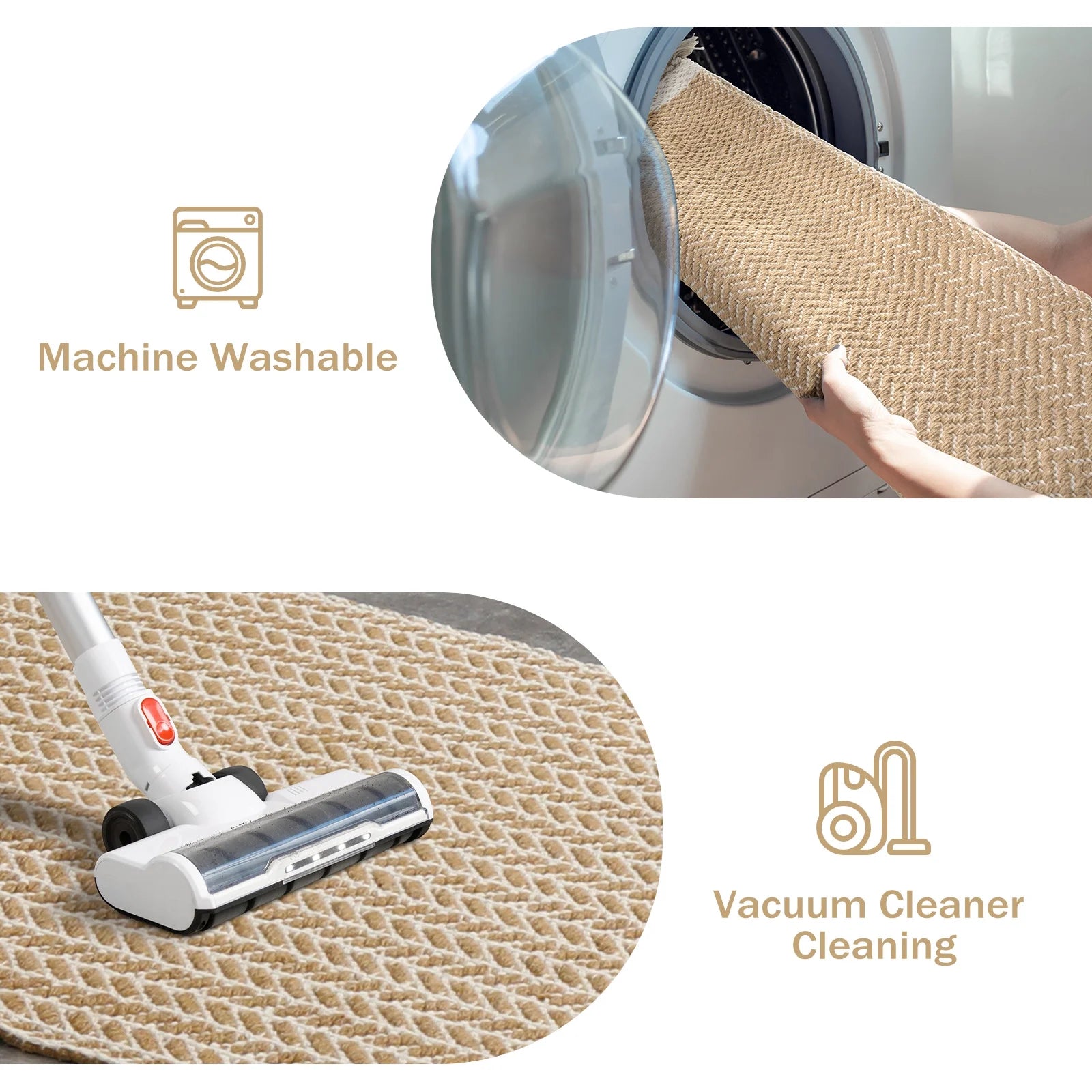 Moynesa farmhouse handmade area rugs bring comfort and beauty to your home. Boho washable rugs are made of lightweight woven cotton, featuring a fishbone bone pattern and handwoven tassels that bring a strong tribal style, adding a vintage charm to your space. The simple black and white color scheme and reversible design make it suitable for most home decor styles, such as farmhouse, contemporary, modern, vintage, scandinavian, traditional, morocco and more. The low pile design of this black and white rug prevents dirt and pet hair from hiding and also resists pet scratching, making it kids & pet friendly. Area rug with tassels comes in three sizes: 2'x3' for small kitchen sink rugs, 2'x6' runner rug for the hallway, and 3'x5' rugs for the entryway. Regularly sweep or vacuum to remove dust, dirt, or debris to keep your bedroom rug clean and tidy.You can also gently wash in cold water and air dry after machine washing.We recommend using a rug pad with our highly absorbent kitchen rugs for better performance. Please note: there may be slight shedding after the first wash due to the handmade nature of the rug; the unbound edges and minor imperfections add to its charm.