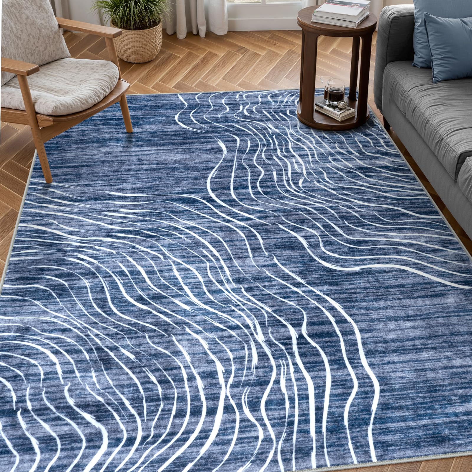 RUG ROBOT Abstract Area Rugs for Living Room, Soft Washable Rugs for Bedroom, Non-Slip Modern Wave Striped Large Accent Carpet for Dining Room Kitchen Nursery