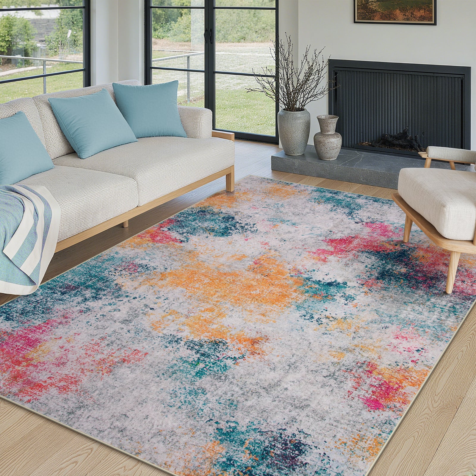 Add a unique touch of color to your bedroom/living room with the RUG ROBOT modern abstract oil painting rug collection. Designed with a delicate palette, color blocks are blended in a freely splashed form, with no regular boundaries yet harmonious unity, combining artistic spontaneity with home adaptability. This versatile style makes this modern rug suitable for living room, bedroom, kitchen, dining room, and more. Designed with skin-friendly cashmere-like low pile, our rugs for living room will feel as soft as clouds when you walk or lie on this throw carpet barefoot. This 0.2 inches thickness facilitates easy door opening and seamless vacuuming, eliminating the risk of tripping. These bedroom rugs have a TPE non-slip backing, which can grip firmly on hardwood and tile floors, making this large area rug a safe choice for families with pets. Designed for easy daily cleaning and maintenance, our washable area rugs are stain-resistant and waterproof. For spills, just wipe with a damp cloth for quick cleaning. Regular vacuuming only requires a low-power vacuum cleaner to keep the rug clean. RUG ROBOT accent carpet are the perfect choice for your busy family life.
