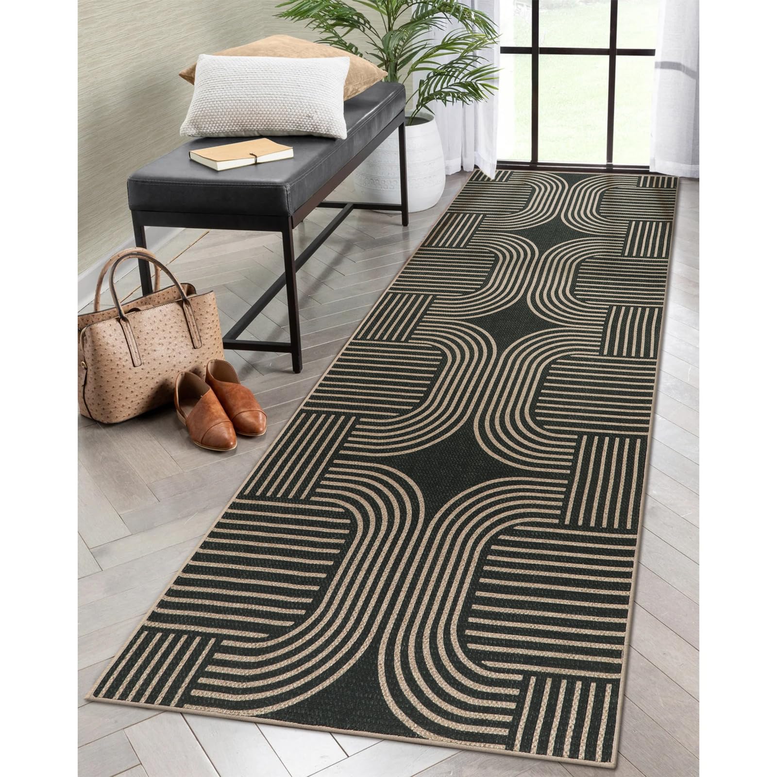 RUG ROBOT Modern Geometric Area Rugs for Living Room, Washable Easy Jute Black Indoor Outdoor Rugs for Entryway Non Slip, Farmhouse Accent Carpet for Bedroom Patio Courtyard