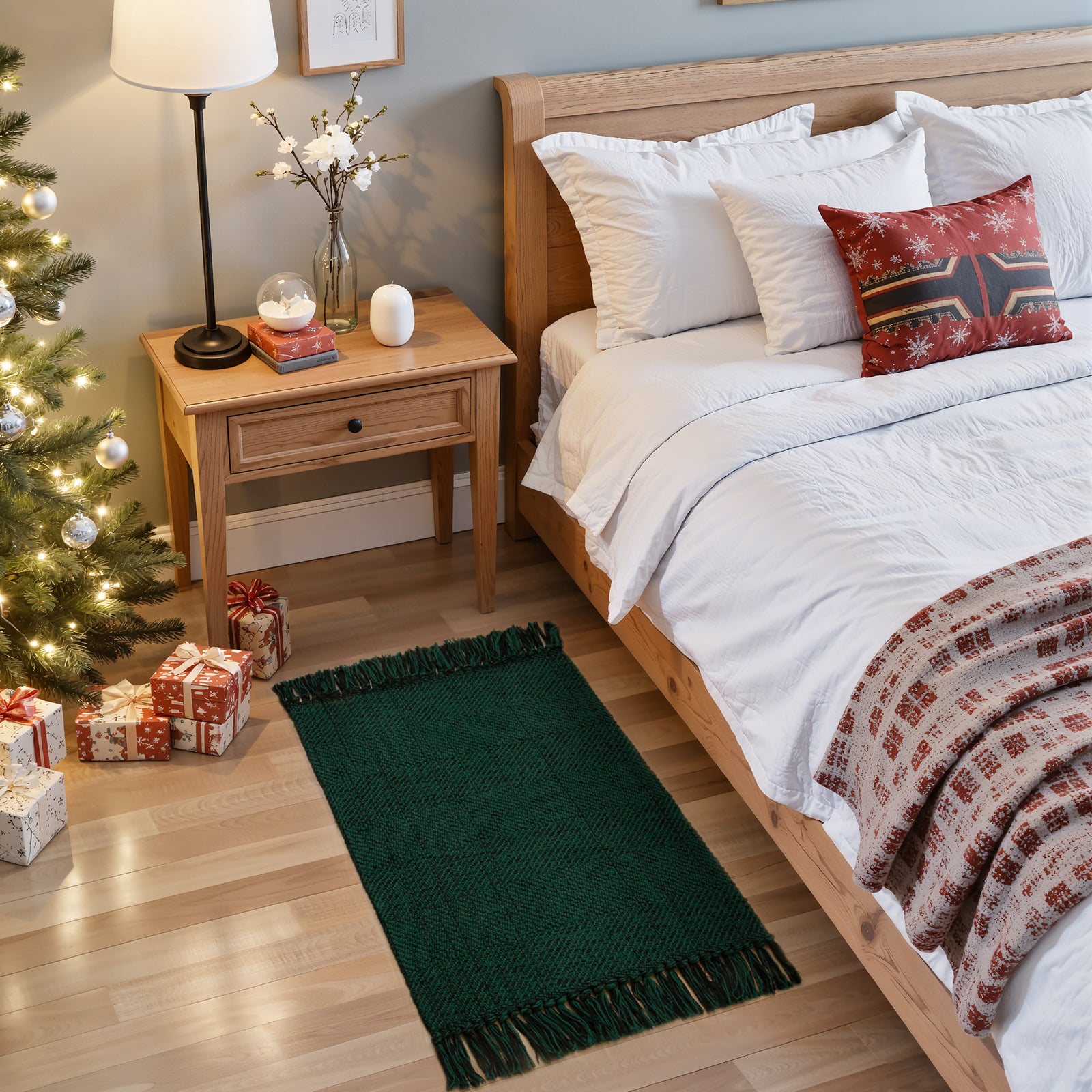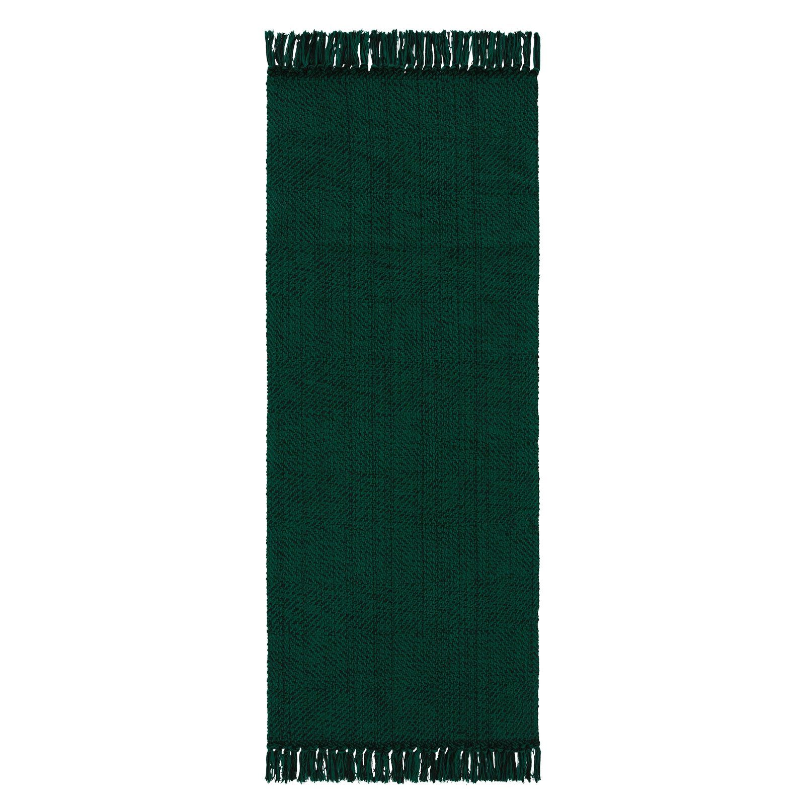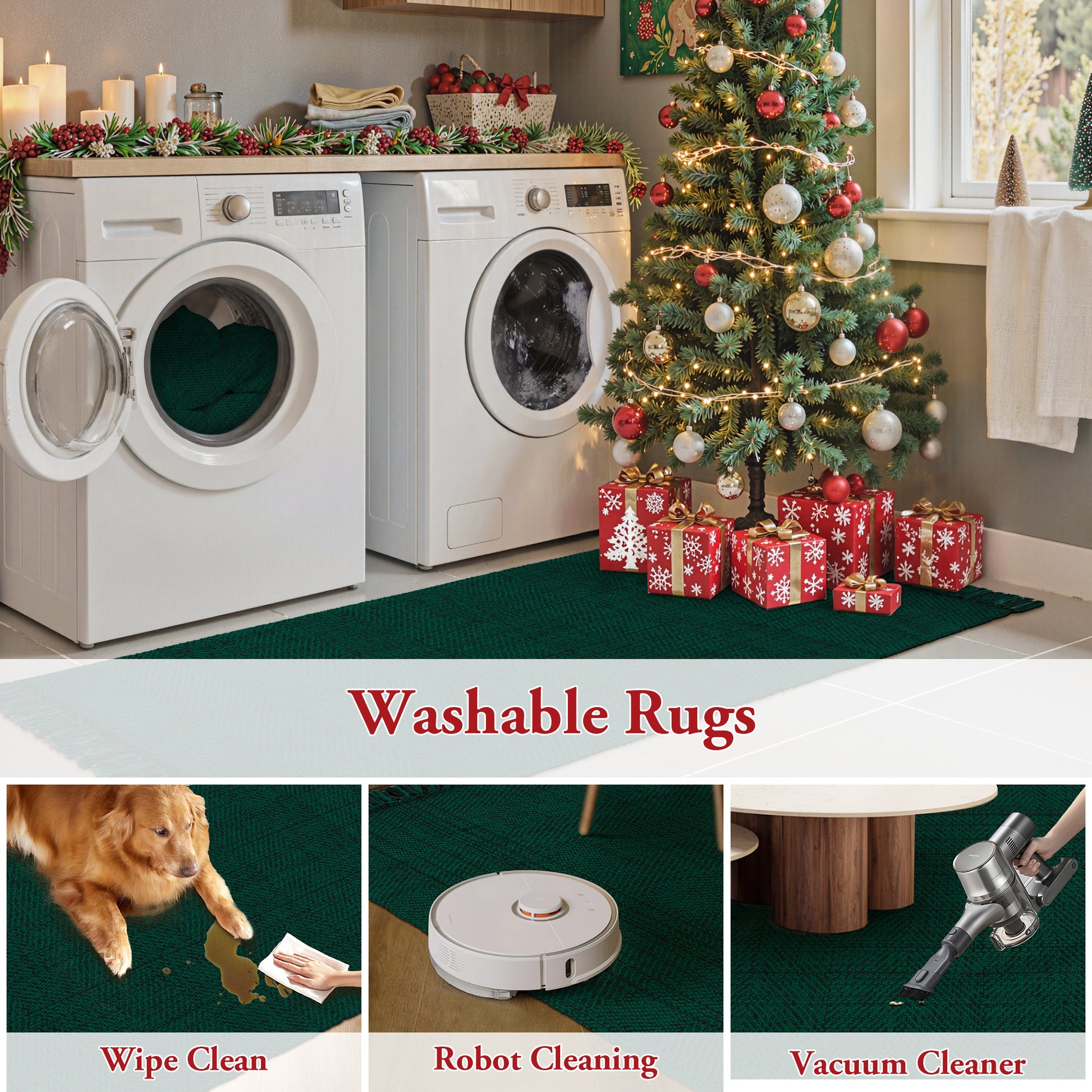SUNDEREY Christmas Hallway Runner Rug, Washable Kitchen Rug, Cotton Woven Reversible Entryway Rug, Holiday Xmas Decor Boho Rug Low-Pile Throw Rug for Dining Room Office,Green&Black